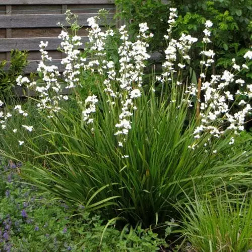 Libertia grandiflora produces strong clumps of narrow, grassy, dark green leaves above which appear stiff stems carrying sprays of saucer-shaped white flowers, followed by attractive orange-brown seed pods.