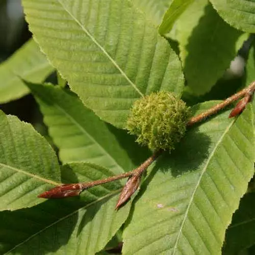 Originally from Chile and Argentina, Nothofagus alpina is a large, fast-growing, deciduous tree with a conical, quite open habit and good autumn colour. Beech-like leaves, oval, pointed and with very deeply impressed veins are deep green, turning orange and red in autumn. Inconspicuous flowers are followed, on female flowers, by little winged fruits containing small, yellowish nuts. Sometimes known as Southern beech, commonly known as raulÃs do best in areas of mild winters and high rainfall. Ideal as a specimen in a park or very large garden.