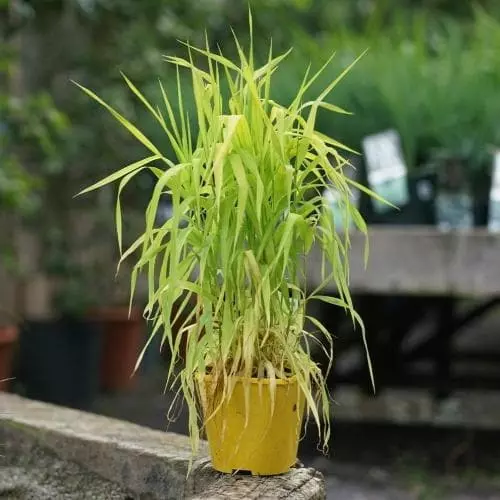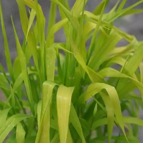 A beautiful golden grass, Phalaris arundinacea Pure Gold is a small, vigorous, cool season, perennial grass, with a tufted, bushy habit. It starts into growth early, spreading by means of stolons, and making good ground-cover where its slightly invasive tendencies don’t matter. The leaves are narrow and a lovely, luminous, pale gold, bringing a splash of light to a partially shaded part of the garden. In summer, this grass may produce small brown flowers. Ribbon grass Pure Gold is related to the notorious gardener’s garters (Phalaris arundinacea var. picta) but is much less vigorous and invasive. Don’t plant in full sun, as the leaves will be green.