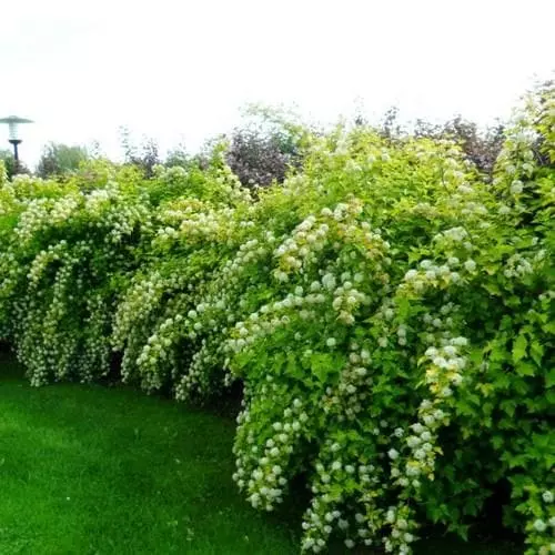 A compact, gold-leaved cultivar of this hardy North American species, Physocarpus opulifolius Dart’s Gold is a medium-sized, slow-growing, deciduous shrub with a suckering habit and arching brown branches. The three-lobed leaves emerge bright yellow, slowly becoming a rich green as they age. In summer, small, scented cream flowers, sometimes with a pink tinge, appear. These are followed by small brown fruits. Good in a mixed shrub planting to contrast with deeper green foliage. Ninebark Dart’s Gold holds the RHS Award of Garden Merit.