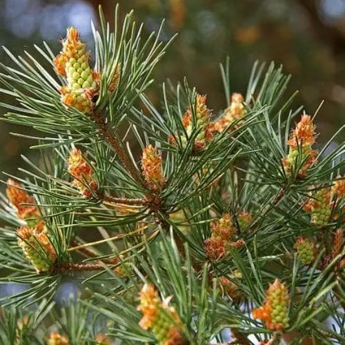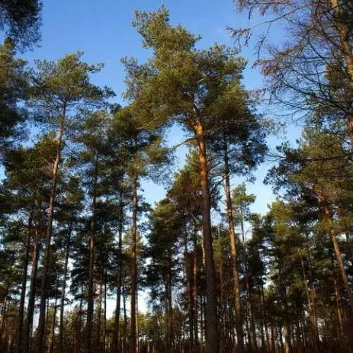 One of our native evergreen conifers, Pinus sylvestris is a medium to tall growing tree with foliage of paired grey-green needles and cones on short stalks. Scots Pine has an attractive textured red-brown bark which sheds off round ‘scales’ with age. With maturity the crown becomes rounded and almost flat. Scots pine is an excellent tree for poor soils, especially dry soils. It is one of the especially wildlife friendly conifers for nesting birds, and the cones are among the native Red Squirrels’ favourite food! It can also be planted within mixed forestry as a firewood or timber crop.