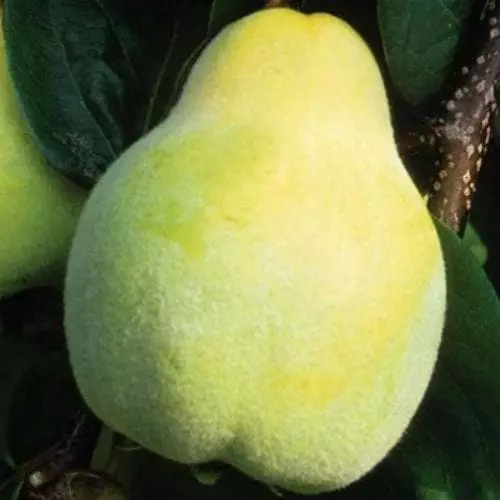 Bred in the USA, Quince Meech’s Prolific is one of the most popular and reliable quinces for warmer parts of Ireland. The fruit is large, pear-shaped, yellow when fully ripe; it is highly aromatic, with an excellent, tart flavour when cooked, and is ideal for quince jelly. The tree is very attractive, gnarled and twiggy, moderately vigorous and spreading, with beautiful pink blossom like single roses in June. Tip-bearer. Heavy cropper, coming notably early into bearing; thin fruitlets if the crop is heavy. Pick the fruit before the first frosts, spread out on trays away from other fruit and allow to ripen fully to yellow before using.