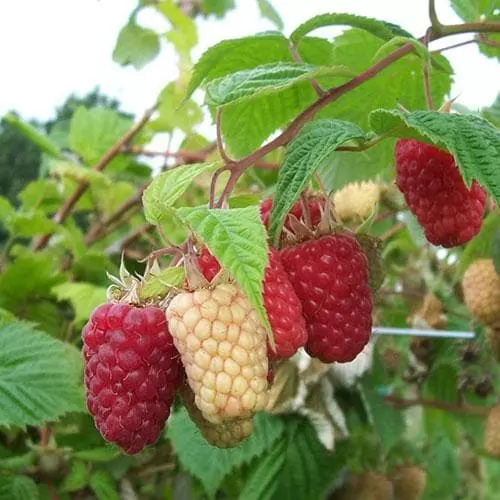 An American-bred, late-season, summer-fruiting raspberry, Rubus idaeus Cascade Delight fruits from mid-July to September and will need the support of a post and wires, or be grown against a fence or wall. The fruits are large, conical, glossy, raspberry-pink; the flesh is juicy with a good flavour, and quite firm, giving it a longer shelf-life. A vigorous, reliable, disease-resistant cane fruit, it is resistant to root-rot, so is tolerant of heavier, wetter soils. Self-fertile and good for attracting pollinators.