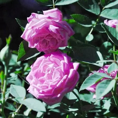 An old china rose bred in 1840. Rosa Hermosa produces continuous ‘old-fashioned’ blooms of lilac-pink on a small sturdy bush. Slightly fragrant. Repeat flowering. Height & Spread: 4ft x 3ft