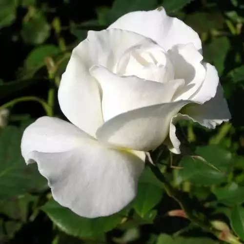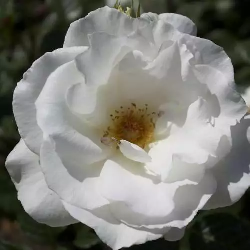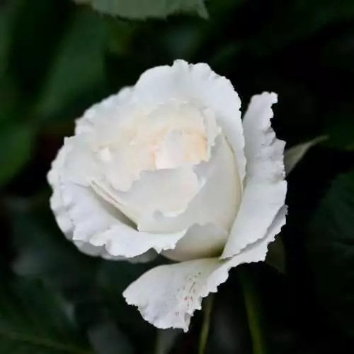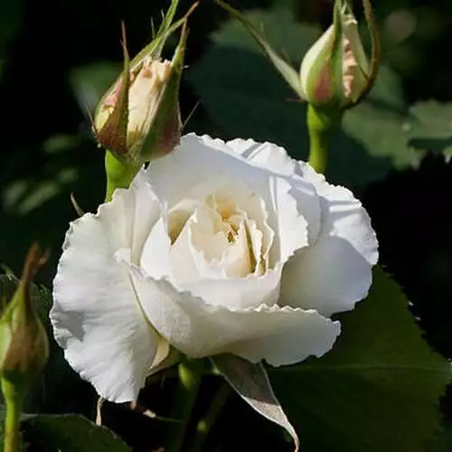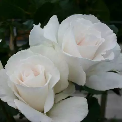 A very good, repeating floribunda rose, Rosa Margaret Merril is a fast-growing, deciduous shrub rose, with an upright habit, which never droops. The foliage is divided into slightly serrated, ovate leaflets, which emerge light burgundy-red and quickly turn a lustrous, mid- to deep green. From July to September, sometimes later, beautiful pointed tea rose-shaped buds open into clusters of delicate-looking, high-centred, double, white (in a warm summer) or faintly blush-pink flowers, with a strong, delicious, citrus fragrance, sometimes with a hint of spice; the blooms flatten as they mature to reveal golden stamens. Sometimes flowers in two good flushes, but where suited it can flower almost continuously. Shrub rose Margaret Merril is healthy and strong-growing, but has a slight tendency to blackspot.