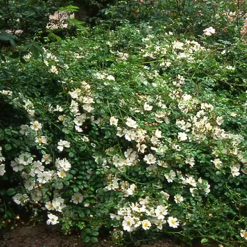 AÂ pretty, summer-flowering ground-cover (procumbent) rose with a long period of bloom, Rosa Partridge is a low-growing, vigorous, deciduous shrub rose with a dense, compact, very spreading habit and bright green leaves. In late July and early August, pink buds open to single, pure white flowers with golden stamens, followed by small hips in autumn. The flowers have a medium to strong musk fragrance and are attractive to pollinators. Ground-cover rose Partridge is a good rose for planting at the front of a border, and is an excellent weed-suppressor.