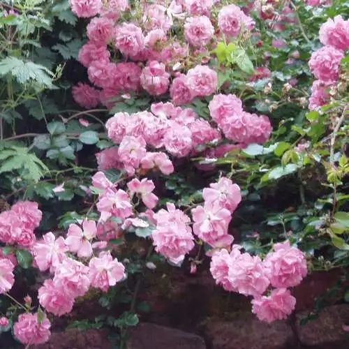 A floriferous, ground-cover rose, Rosa Pheasant is a rather thorny, deciduous ground-cover rose with a low, creeping, spreading habit, ideal for planting on a bank or other awkward site where weeding is difficult. The abundant, divided foliage has finely toothed, ovate, glossy, mid-green, leaflets. In midsummer, the plant bears clusters of lightly fragrant, semi-double, cup-shaped, long-lasting, clear rose-pink flowers with prominent yellow stamens; there is some repeat-flowering over the summer. Ground-cover rose Pheasant is a robust, healthy rose, with excellent disease-resistance.