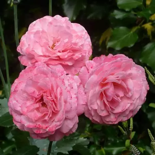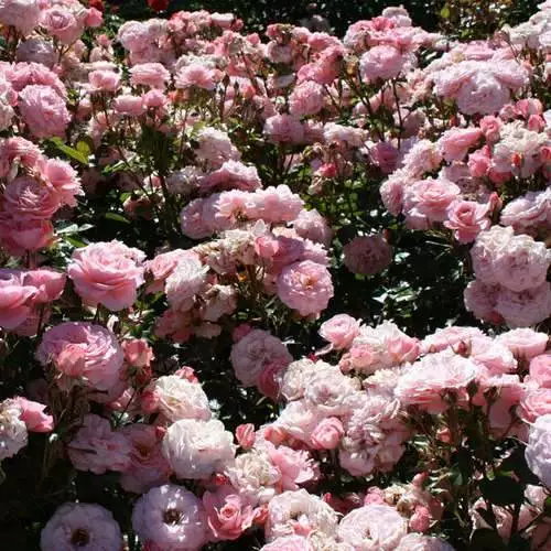 A very floriferous, repeat-flowering floribunda or cluster-flowered rose, Rosa Sexy Rexy is a small, deciduous shrub rose with a compact, bushy habit. The healthy, divided foliage has glossy, deep green leaflets, a good foil for the flowers. From June to late autumn, the rose bears large clusters of medium-sized, fully double, clear light pink flowers, 3”/8cm wide; the fragrance is only light. Rose Sexy Rexy is small enough to grow in soil-based compost in a container, and makes a very pretty rose for the patio.