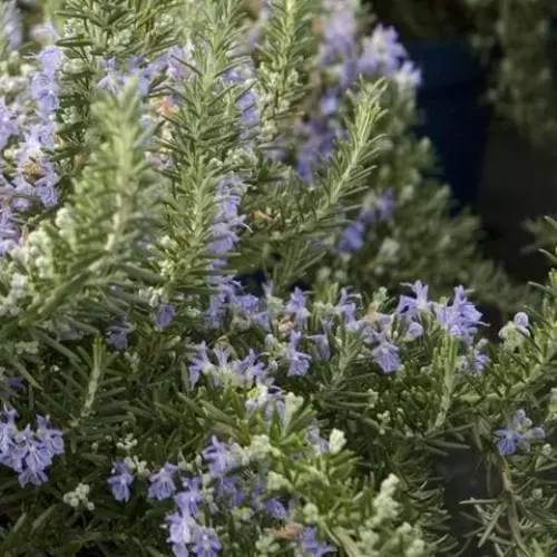 A low spreading, mat forming aromatic shrub with grey-green green leaves and deep blue flowers in May and June. Similar to ‘Prostratus’ but with darker blue flowers. Can be cut for using in cooking. Needs full sun and very well drained soil to do well. Dislikes excessive winter wet. Best to cut back regularly in spring to retain a bushy shape and prevent the plant becoming leggy. Tolerates salt very well.