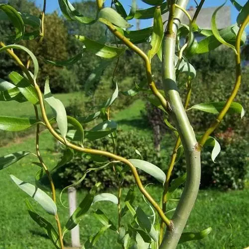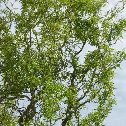 A tall shrubby upright willow with twisted and contorted branches that spiral upwards, bearing interesting twisted leaves that are said to resemble dragons claws. Popular among florists as they can easily fit the cuttings into almost any bouquet. Salix babylonica Tortuosa has a stunning silhouette in the Winter, coupled with light brown branches. A must for any garden; can also be coppiced in smaller gardens.