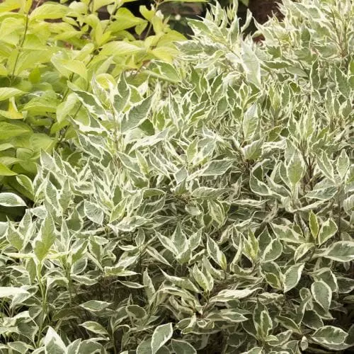 A variegated form of SIberian dogwood, Cornus alba Sibirica Variegata shares the stunning winter stems of the species, but is more attractive in summer. Â A medium-sized, suckering, deciduous shrub, it forms a clump of slender stems which show vivid red in winter. The leaves are attractively variegated, and turn crimson in autumn before they fall. The stems of Cornus alba Sibirica colour best in full sun, and colour is most striking on younger stems, so stems should be cut back to the ground regularly (half the stems each year). Â Variegated Siberian dogwood holds the RHS Award of Garden Merit.