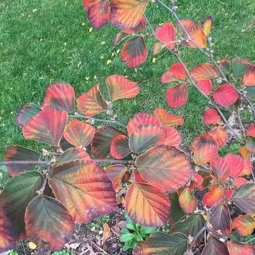 One of the red witch hazels, Hamamelis x intermedia Ruby Glow is a large, fairly vigorous, deciduous shrub with an upright, bushy habit. The broad, hazel-like leaves, 6”/16cm long, emerge mid-green, turning deeper green in summer, and in autumn turn fiery shades of yellow and orange, tinged red. From mid- to late winter, spidery, lightly scented, coppery-red flowers up to ¾”/2cm long, with slightly twisted petals and purplish-red calyxes, appear on the bare branches. Underplanted with early bulbs and winter flowering perennials, Witch hazel Ruby Glow will give untold pleasure in the winter garden.