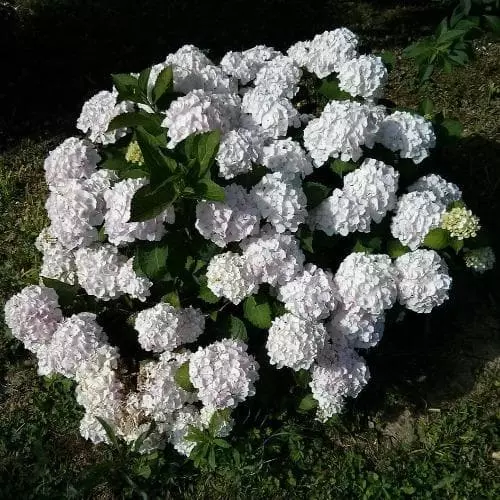 A compact form of mophead hydrangea, more commonly known as Bianco, Hydrangea macrophylla Hbabia is a deciduous shrub with an upright, bushy, rounded habit. The ovate, slightly toothed leaves are deep green, turning red-purple in autumn. In the second half of summer and into autumn, dense clusters of white mophead flowers are borne over a long season. Hydrangea Bianco can also be grown in a container, and is good in a row of identical pots in a formal courtyard. Avoid full sun, as the flowers may scorch.