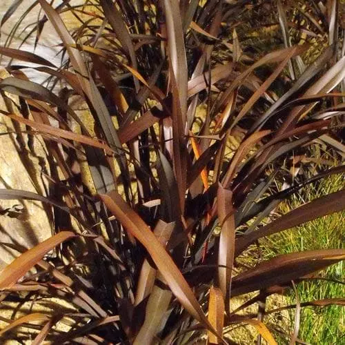 A very compact New Zealand flax cultivar, Phormium Platt’s Black is an evergreen perennial which forms a clump of long arching leaves, striking in a border, but small enough to be grown in containers. The long, sword-shaped leaves are deep purplish black, a wonderful contrast to pink, blue and white summer flowers and silver-grey-leaved plants, and also to hot reds. In winter, the leaves take on a lovely pewter sheen. In hot summers tall flower spikes appear in August and September, bearing panicles of red flowers, followed by seed-heads which persist into winter. New Zealand flax Platt’s Black does well in seaside conditions, but needs winter protection in colder parts of the country.