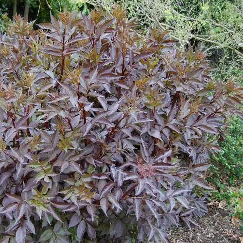 Perhaps the best of the black-leaved elders, Sambucus nigra f. porphyrophylla Black Beauty (also called Gerda) is a large, deciduous shrub with a spreading, suckering habit. The leaves are highly ornamental, finely dissected and a rich purplish-black, which does not change in summer, as some black-leaved elders do. In June, dark red buds open to beautiful, broad heads of pale-pink flowers, delightfully scented of lemon; these are very attractive to pollinators, and can be used to make a pink elderflower cordial. The flowers are followed by shiny black berries, loved by birds, and useful for wine-making and jellies. Elder Black Beauty holds the RHS Award of Garden Merit. Cut back hard each spring to keep the shrub compact and the foliage at its best, and then mulch with manure.