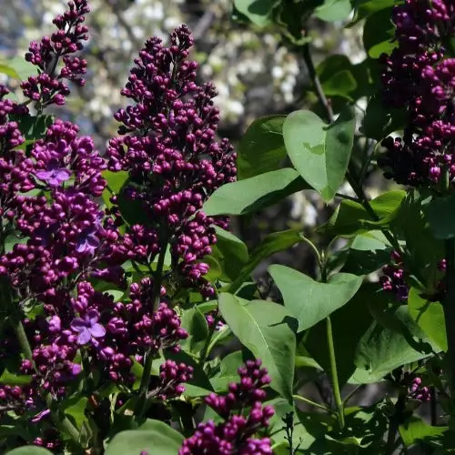 A stunning lilac from the famous Späth nursery in Germany, Syringa vulgaris Andenken and Ludwig Späth is a medium-sized, deciduous shrub with a spreading habit. The heart-shaped leaves are deep green, setting off the flowers wonderfully. Slender spires of deep carmine-purple, fragrant flowers appear in May. This lilac needs minimal pruning, but tolerates hard renovation pruning if necessary. Lilac Andenken and Ludwig Späth holds the RHS Award of Garden Merit.