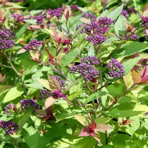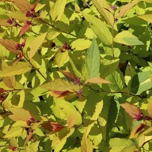 Densely formed dwarf shrub with soft green-yellow foliage flushed with red, and small heads of pale pink flowers in summer. Good autumn colour. Perfect plant for any garden, Zero maintenance, easy impact,