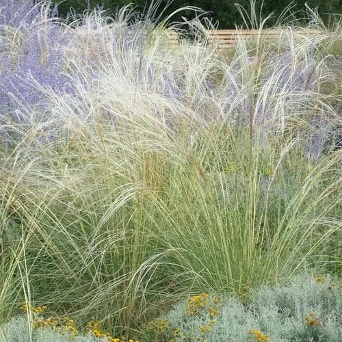 A cool-season grass from the Americas, Stipa tenuissima is a small, clump-forming, deciduous grass with an upright, arching habit, moving gracefully in the slightest breeze. Â Very slender leaves emerge jade-green, turn straw-coloured in autumn. Panicles of flowers, with the longest, slenderest, silky awns appear in from early to late summer late August; these also start jade green, turning blonde as they age. Mexican Feather Grass is a charming plant, good in a gravel garden, and particularly useful for knitting a planting scheme together. Seeds about mildly. Cut back dead foliage in early spring to allow the fresh new leaves to come through.