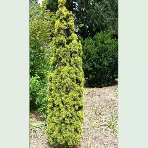 A dwarf form of the fastigate common yew, Taxus baccata David is a compact evergreen tree. This new variety has beautiful golden young foliage that fades as it matures. David’s Golden Yew also has a more upright and narrow form, making it a useful tree for smaller spaces on difficult sites and soils. It is a male cultivar and does not bear the usual red berries as most yews do. Makes a fine specimen for a gravel or heather garden bringing height and a golden colour; can also be grown in a pot.