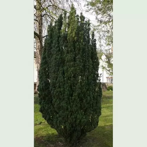 A native conifer originating from County Fermanagh, Taxus baccata Fastigiata is a form of which two specimens were discovered in 1767, one of which is still alive today on the grounds of Florence court demesne. It is estimated that over 5 million Irish yew have been propagated from this one remaining tree. The Irish Yew has very upright growth, forming wide columns. It is a small to medium sized evergreen tree that can live to a great age. Its dark green needle-like foliage tolerates hard pruning which leads to its use in avenues and hedges. In Winter, the Yew carries red berries which have seeds poisonous to humans and animals, but are eaten by birds in Winter. Taxus baccata is a useful tree for difficult sites and soils and its dark, almost sombre green is a good foil for more colourful plants in the garden. Yew produces excellent wood to work with many uses.