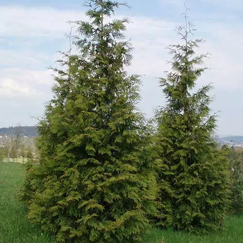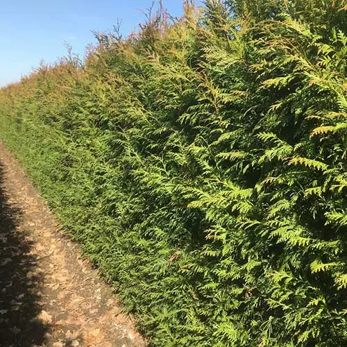 A handsome and adaptable conifer, Thuja plicata Excelsa is a vigorous, fast-growing, medium-sized to tall, evergreen tree with an upright, pyramidal habit and upward-sweeping branches. The bark is reddish-brown, flaking and fibrous, and the scale-like leaves are glossy and deep green, curiously scented of pineapple. Unobtrusive flowers are followed by tiny cones. Besides making a handsome specimen or avenue tree, Western Red Cedar Excelsa responds well to clipping and makes a good hedging plant, providing cover for wild-life.