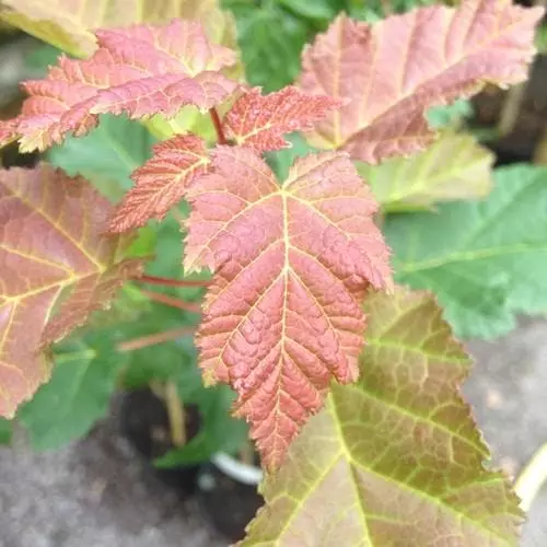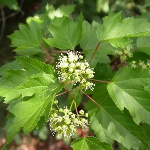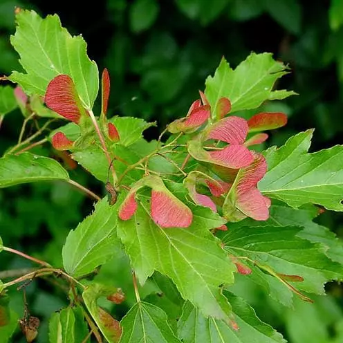 A small, vigorous tree with an upright habit; the dark green, glossy 3-lobed leaves are light green on the reverse and become bright red in autumn. Acer ginnala (syn. Acer tataricum subsp. ginnala) is a summer-flowering tree with creamy yellow fragrant panicles of small flowers, followed by persistent red-winged fruits until winter. A good option for urban gardens as it will tolerate pruning if required. Its autumn colour will stop you in your tracks every time you see it.Â
