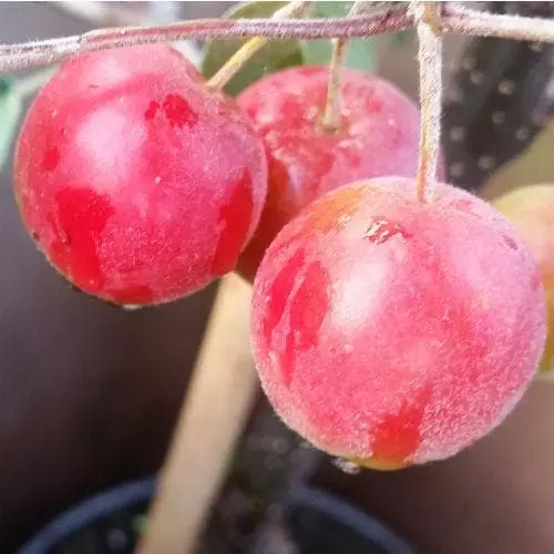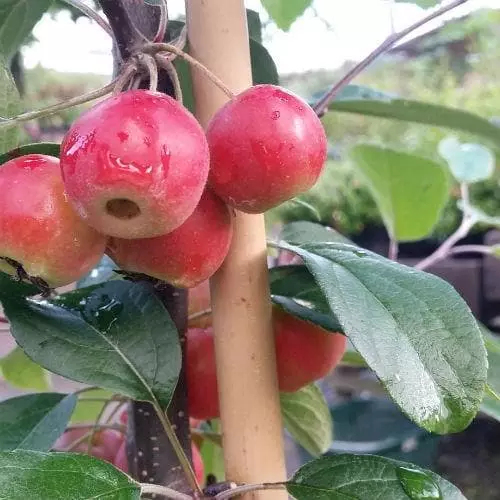 A highly ornamental crabapple, Malus x atrosanguinea Gorgeous is a small, deciduous tree, the perfect specimen for year-round interest in the smaller garden. Masses of pink and white blossom in April–May are followed by heavy crops of large, orange-red fruits 5cm across, which make a very good jelly, or can be used to make pectin for other jams. Pick in November; any fruit left on the tree persists until into the new year before the birds eat it. Foliage shows orange and yellow tints in autumn. Self-fertile.