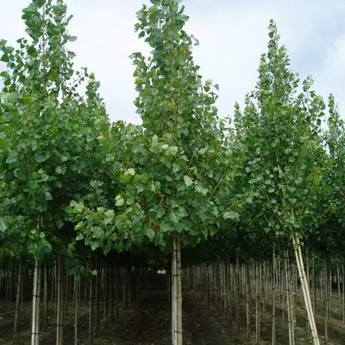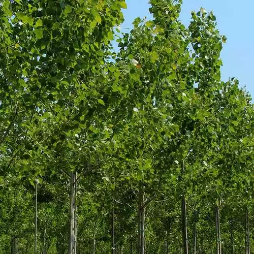 A tall spreading tree that is very fast growing and tolerant of varied conditions. A male variety producing showy bright red catkins in early spring, and coppery-bronze foliage maturing to dark green. It makes a great windbreak or quick shade tree. As with most poplars best planted far from buildings as the roots can be too vigorous.