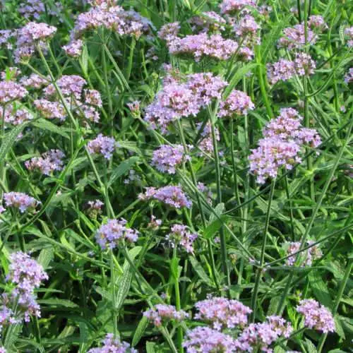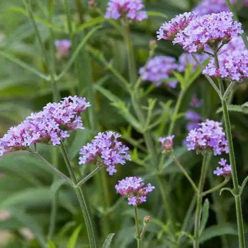 A compact form of the justly popular species, Verbena bonariensis Lollipop PBR is a long-flowering, airy, herbaceous perennial suitable for the smallest garden. It has unobtrusive, grey-green leaves on branching, airy stems, which bear lilac-purple flowers from June to September; these flowers sway over the planting like dots of colour, surrounded by butterflies. Good with achilleas, cranesbills and low grasses, dwarf verbena Lollipop does not seed about as prolifically as the species, but it is a little less hardy, so give it a protective mulch over winter.